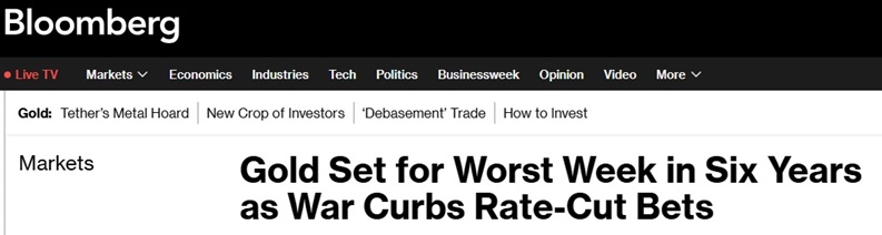 受伊朗冲突影响,原油、天然气和燃料价格飙升,加剧市场对通胀的担忧,从而降低各国央行下调借贷成本的可能性。由于黄金本身不产生利息,这对金价构成不利影响。