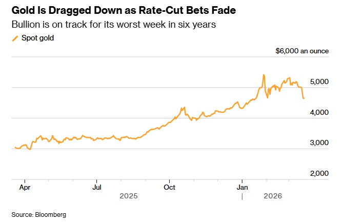 现货黄金价格周五亚市交投于4685美元/盎司附近,本周迄今累计下跌近7%,创2020年3月以来最大周跌幅。